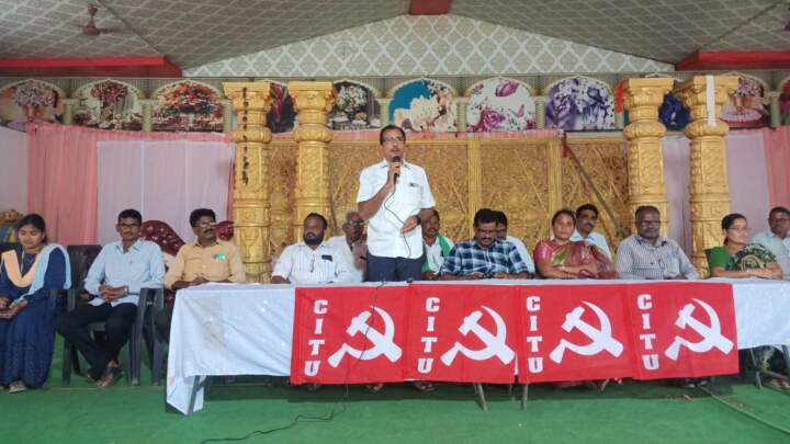కారేపల్లి, మహా:బహుళార్ధక ప్రయోజనాలు కల్పిస్తున్న ఐసీడీఎస్ ను విచ్చిన్నానికి కేంద్ర రాష్ర్ట ప్రభుత్వాలు కుట్ర చేస్తున్నాయని సిఐటియు ఖమ్మం జిల్లా ప్రధాన కార్యదర్శి కళ్యాణం వెంకటేశ్వరరావు విమర్శించారు. ఇటివల రోడ్డు ప్రమాదంలో మృతి చెందిన అంగన్వాడీ టీచర్స్ అండ్ హెల్పర్స్ యూనియన్ సింగరేణి మండల నాయకురాలు ఎస్.కే. మహబూబి సంస్కరణ సభ సిఐటియు సింగరేణి మండల కన్వీనర్ కే నరేంద్ర అధ్యక్షతన సోమవారం జరిగింది. ఈసభలో కళ్యాణం వెంకటేశ్వరరావు మాట్లాడుతూ ఐసీడీఎస్ లో శ్రమ దోపిడి జరుగుతుందని, కనీస వేతనాలు, ఉద్యోగ భద్రత కరువైందన్నారు. అంగన్వాడీల హక్కులకై అంగన్వాడీలను ఐక్యపరచడంలో మహబూబీ కీలకపాత్ర పోషించిందన్నారు. క్రమశిక్షణతో అమలు చేయడంలోనూ సంఘాన్ని చీల్చి అంగన్వాడీల పోరాటాన్ని దెబ్బ కొట్టాలని కుట్రలను తిప్పి కొట్టటంలో మహబూబీ ప్రాత మరవలేనిదన్నారు. అంగన్ వాడీల సమస్యల పరిష్కారానికి అంగన్ వాడీ కార్యకర్తలకు తలలో నాలుకల వ్యవహరించిన ఎస్.కె మహబూబి జీవితం ధన్యమని కొనియాడారు. కేంద్రంలో అధికారం వెలక బెడుతున్న మోడీ 29 కార్మిక చట్టాలను రద్దు చేసి నాలుగు కోడ్ బిల్లులుగా అమలు చూస్తున్నదని వీటికి వ్యతిరేకంగా జులై 9న జరుగుతున్న సార్వత్రిక సమ్మెను జయప్రదం చేయాలన్నారు. కనీస వేతనం సంక్షేమ బోర్డు వారి హక్కుల రక్షణకై పోరాడాలని, మోడీ కార్మిక ప్రజావ్యతిరేక విధానాలను తిప్పకొట్టాలని పిలుపునిచ్చారు. కేంద్ర కార్మిక వ్యతిరేక విధానాలను తెలంగాణ రాష్ట్ర ప్రభుత్వం వ్యతిరేకించకుండా సమర్ధించే దోరణిలో ఉందన్నారు. వ్యతిరేకంగా కార్మికులను కూడగట్టి ముందుకు సాగాలని ఉదృతమైన పోరాటాలు నిర్వహించడమే మహబూబికి అర్పించే నిజమైన నివాళి అని అన్నారు. ఈ సంస్మరణ సభలో సిఐటియు జిల్లా అధ్యక్షులు తుమ్మ విష్ణు శ్రామిక మహిళ జిల్లా కన్వీనర్ పి రమ్య, వ్యవసాయ కార్మిక సంఘం జిల్లా అధ్యక్షులు మెరుగు సత్యనారాయణ, అంగన్వాడీ యూనియన్ కామేపల్లి ప్రాజెక్టు అధ్యక్ష కార్యదర్శులు ఎస్ నాగమణి, దుగ్గి పాపారాణి, వ్యవసాయ కార్మికసంఘం జిల్లా ఉపాధ్యక్షులు కొండబోయిన నాగేశ్వరరావు, గిరిజన సంఘం జిల్లా కార్యదర్శి దుగ్గీ కృష్ణ, అధ్యక్షులు వజ్జ రామారావు, సిఐటియు భద్రాద్రి కొత్తగూడెం జిల్లా నాయకులు ఎస్ఏ. నభి, కామేపల్లి మండల సిఐటియు నాయకుడు బాధావత్ శీను, రిటైర్డ్ సిడిపిఓ విజయలక్ష్మి, ఐద్వా సింగరేణి మండల కార్యదర్శి కె ఉమావతి, గ్రామీణ వైద్యుల సంఘం నాయకులు గండమల్ల వెంకటేశ్వర్లు, రైతు సంఘం నాయకులు దాచేపల్లి కృష్ణారెడ్డి, మాజీ సర్పంచ్ కురసం.సత్యనారాయణ, భూక్య లక్ష్మణ్, మెహబూబి భర్త ఎండి ఇస్మాయిల్, కుమారుడు దిశాదు పాషా, కుమార్తె అనిసా, రాణి, పద్మ ,జ్ఞానమ్మ, స్వరూప, భారతి, కృష్ణవేణి తదితరులు 