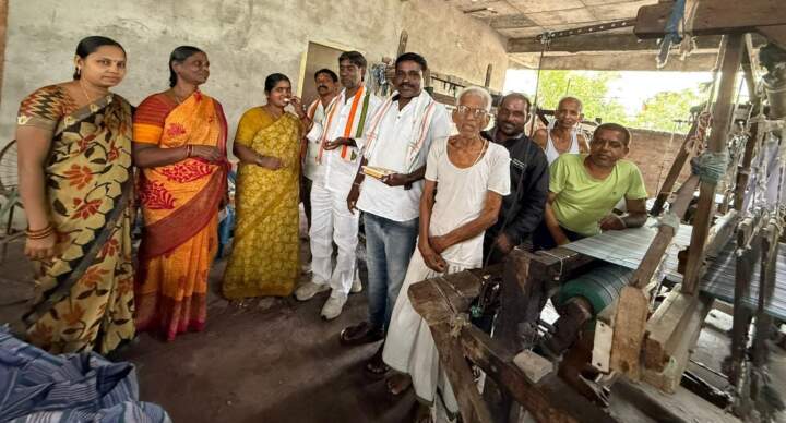 చేనేత విభాగం వరంగల్ జిల్లా అధ్యక్షులు దాసరి రాజశేఖర్ ఆధ్వర్యలో ఏర్పాటు చేసిన చేనేతలకు రుణమాఫీ కార్యక్రమానికి ముఖ్య అతిథిగా చిప్ప వెంకటేశ్వర్లు, రాష్ట్ర ఆర్గనైజింగ్ సెక్రటరీ బాసాని కరుణాకర్ నేత హాజరయ్యారు. ఈ సందర్భంగా చిప్ప వెంకటేశ్వర్లు మాట్లాడుతూ తెలంగాణ రాష్ట్ర ప్రజా ప్రభుత్వం రేవంత్ రెడ్డి ఆదేశాల మేరకు చేనేత కార్మికులకు 33 కోట్ల రూపాయల మేర చేనేత రుణమాఫీ చెయ్యడం జరిగింది. గత ప్రభుత్వంలో కేటీఆర్ చేనేత మంత్రిగా ఉండి చెయ్యని రుణమాఫీ ఇండియన్ ఇన్స్టిట్యూట్ ఆఫ్ హ్యాండ్లూమ్ టెక్నాలజీ కోర్సు ప్రారంభోత్సవం లో మాట ఇచ్చి 2017 ఏప్రిల్ 1 సం నుండి ఆగస్ట్ 2024 మార్చ్ 31 వరకు చేనేత కార్మికులు తీసుకున్న లక్షలోపు వ్యక్తి గత రుణాలను మాపి చేసి చేనేత కుటుంబాలలో వెలుగు నింపిన ముఖ్యమంత్రి రేవంత్ రెడ్డి కి తెలంగాణ చేనేత కార్మికుల పక్షాన కృతజ్ఞతలు తెలిపారు. అనంతరం కొత్తవాడ లోని చేనేత కార్మికులు స్వీట్లు తినిపించుకొని సంబరాలు జరుపుకున్నారు. ఈ సందర్భంగా రాష్ట్ర వ్యాప్తంగా చేనేత కార్మికులు సంబరాలు చేసుకోవాలని ఇందులో చేనేత విభాగం రాష్ట జిల్లా కార్యవర్గం పాల్గొనాలని పిలుపునిచ్చారు. ఈ కార్యక్రమంలో నంబి మురళి, ఈగ శ్రీధర్, కట్ల స్వామి, ఆడెపు చంద్రమౌళి, గుర్రం రాజమౌళి, ఆనందం వెంకటయ్య, గోంగూర నారాయణ, నాసం లావణ్య, వంగ రేఖా, కందకట్ల సరళ, జెట్టబోయిన స్వరూప పాల్గొన్నారు.