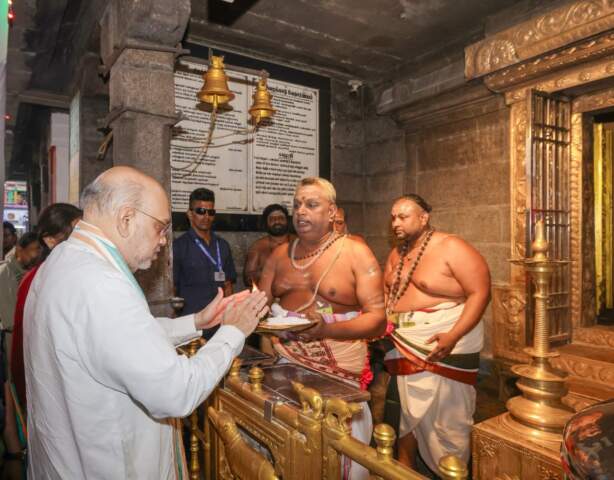 తమిళనాడు రాజధాని చెన్నైలో పర్యటిస్తున్న కేంద్ర హోం శాఖ మంత్రి అమిత్ షా, సుప్రసిద్ధ ఆధ్యాత్మిక క్షేత్రమైన మైలాపూర్లోని అరుళ్మిగు శ్రీ కపాలీశ్వరస్వామి వారిని దర్శించుకున్నారు. అత్యంత పురాతనమైన ఈ చారిత్రక ఆలయంలో ఆయన స్వామివారికి భక్తిశ్రద్ధలతో ప్రత్యేక పూజలు నిర్వహించారు. పరమశివుని దర్శించుకుని ఆశీస్సులు పొందడం పట్ల ఆయన తీవ్ర ఆనందం వ్యక్తం చేశారు.