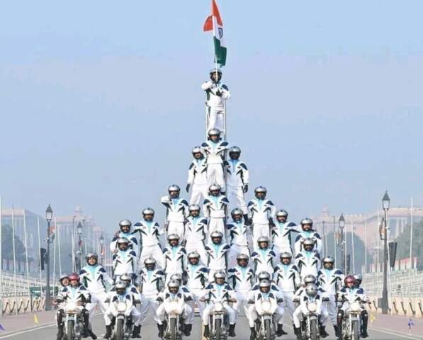 భారత ఆర్మీకి చెందిన ‘డేర్ డెవిల్స్’ సరికొత్త రికార్డు నెలకొల్పింది. కదిలే మోటార్ బైక్లపై హ్యూమన్ పిరమిడ్తో వరల్డ్ రికార్డు నమోదు చేసింది. ఢిల్లీలోని కర్తవ్యపథ్ డేర్డెవిల్స్ ఈ అసాధారణ ఘనతను సాధించింది. 20.4 అడుగుల ఎత్తులో నిర్వహించిన ఈ ఫీట్లో మొత్తం 40 మంది పాల్గొన్నారు. 7 మోటార్ వాహనాలపై నిలబడి కర్తవ్యపథ్ లోని విజయ్ చౌక్ నుంచి ఇండియా గేట్ వరకు 2 కిలోమీటర్ల మేర రైడ్ కొనసాగించారు