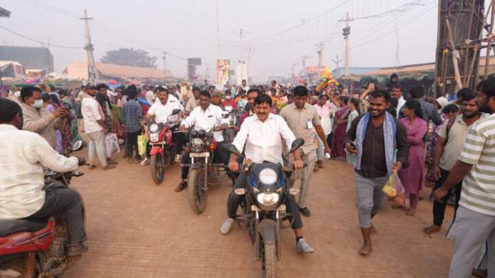 మేడారంలో బైక్పై మంత్రి..! ఏర్పాట్లను క్షేత్రస్తాయిలో పరిశీలించిన రెవెన్యూ మంత్రి పొంగులేటి..