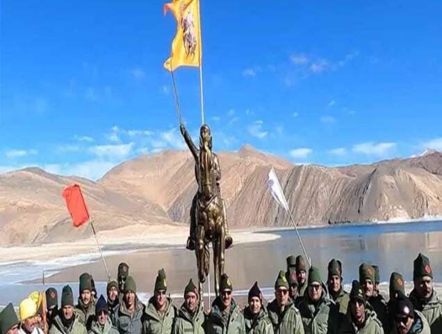 చైనా సరిహద్దుల్లో ఉన్న పాంగాంగ్ సరస్సు ఒడ్డున భారత సైన్యం ఛత్రపతి శివాజీ మహారాజ్ విగ్రహాన్ని ఆవిష్కరించింది. శౌర్యపరాక్రమాలు, దూరదృష్టికి శివాజీ మహారాజ్ చిహ్నమని సైన్యాధికారులు తెలిపారు. 14,300 అడుగుల ఎత్తులో ఈ విగ్రహాన్ని