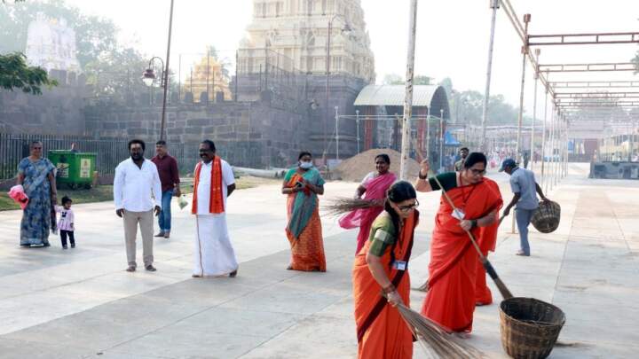 శ్రీశైలంలో స్వచ్ఛ పారిశుధ్య కార్యక్రమం పాల్గొన్న దేవస్థానం సిబ్బంది…!