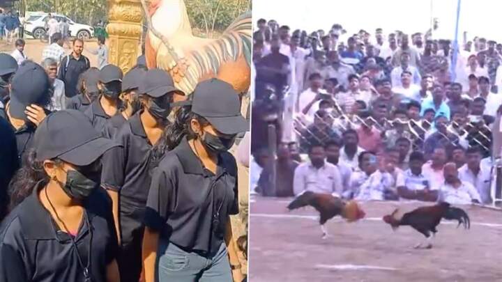 ఏలూరు జిల్లాలో నిర్వహిస్తున్న కోడి పందాల బరుల్లో లేడీ బౌన్సర్స్ లను ఏర్పాటు చేసిన నిర్వాహకులు ఉమ్మడి ఉభయ గోదావరి, కృష్ణ జిల్లాల్లో జోరుగా కోడి పందాలు దాదాపు 450కి పైగా బరుల్లో కోడి