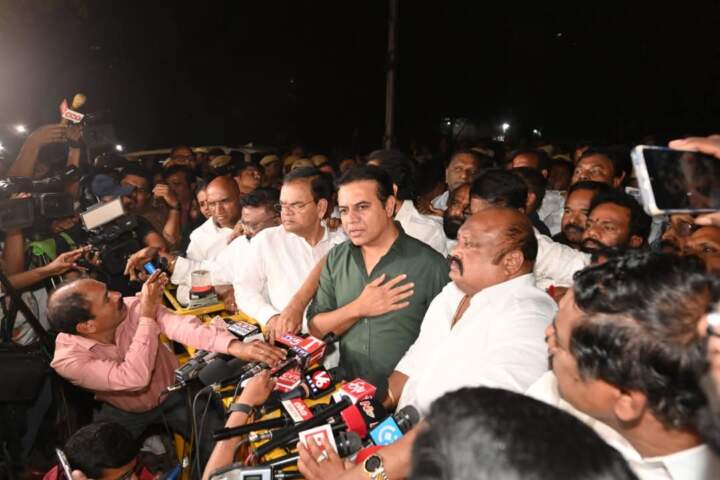 ఈడి విచారణ అనంతరం బిఆర్ఎస్ వర్కింగ్ ప్రెసిడెంట్ కేటీఆర్ ను ఖైరతాబాద్ నియోజకవర్గ బిఆర్ఎస్ ఇన్ ఛార్జ్ ఎంజీఆర్ కలిశారు. ఈ సందర్భంగా శ్రేణులంతా కేటీఆర్ తోనే ఉన్నామని, ఇలాంటి కేసుల వల్ల రామన్న