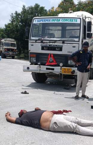 రెడీమిక్స్ వాహనం ఢీకొట్టడంతో ప్రాణాపాయ స్థితిలో వ్యక్తి అతివేగమే ప్రమాదానికి కారణం స్థానికులు ..!