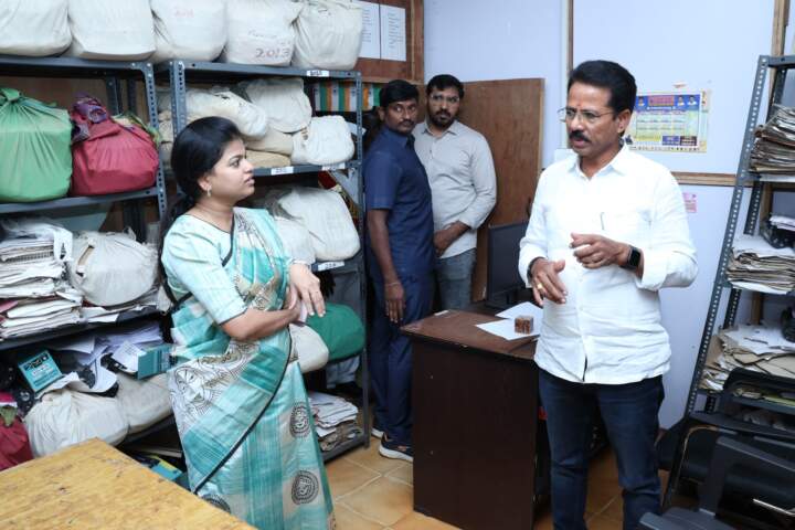 హన్మకొండ మహా; కాజీపేట తహసీల్దార్ కార్యాలయాన్ని హనుమకొండ జిల్లా కలెక్టర్ స్నేహ శబరీష్ శుక్రవారం ఆకస్మికంగా తనిఖీ చేశారు. తహసీల్దార్ కార్యాలయం లోని రికార్డుల గదిని పరిశీలించారు. కార్యాలయంలోని అధికారులు, సిబ్బందిని గురించి అడిగి