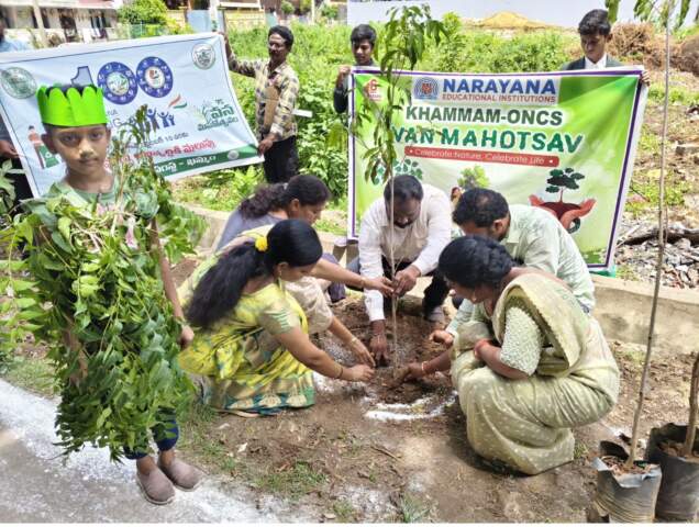 ఖమ్మం సిటీ , మహా. పర్యావరణ పరిరక్షణకు భాగంగా ఖమ్మం నగరంలోని కవిరాజునగర్ నారాయణ పాఠశాలలో వనమహోత్సవం కార్యక్రమం నిర్వహించబడింది. ఈ కార్యక్రమానికి హార్టికల్చర్ ఆఫీసర్ బెల్లం రాధిక, 11వ డివిజన్ కార్పొరేటర్ సరిపూడి