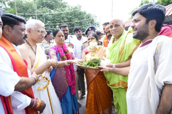 వరంగల్ మహా; శ్రీ భద్రకాళీ శాకాంబరీ నవరాత్ర మహోత్సవాల సందర్భంగా నేడు అటవీ,పర్యావరణ,దేవాదాయ ధర్మాదాయ శాఖ మంత్రి కొండా సురేఖ వరంగల్ భద్రకాళీ అమ్మవారిని దర్శించుకున్నారు. ఈ సందర్భంగా ఆలయ అర్చకులు పూర్ణకుంభంతో మంత్రి