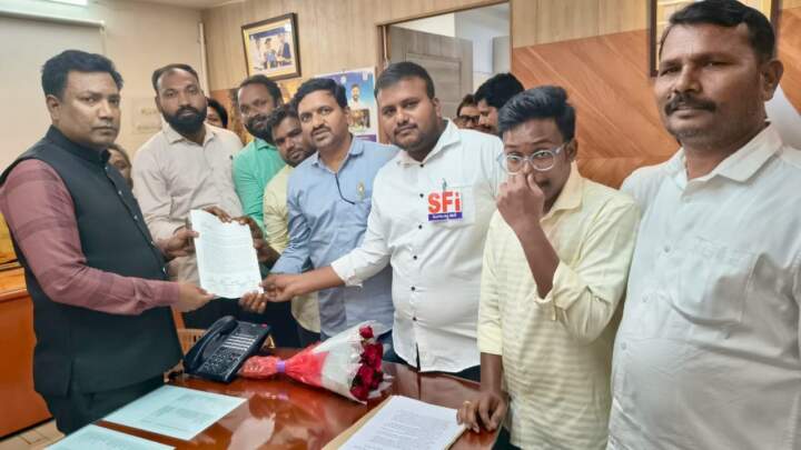 రంగారెడ్డి జిల్లా ప్రతినిధి మహా: ప్రభుత్వ విద్యారంగ సమస్యలపై, విద్యశాఖ కమీషనర్ నవీన్ నికోలస్ ఐఏఎస్ కు ఎస్ఎఫ్ఐ, డివైఎఫ్ఐ, టిపిటిఎల్ఎఫ్ నాయకులు వినతి పత్రం అందించడం జరిగింది. రాష్ట్రంలో విద్యతో ప్రైవేటు విద్యాసంస్థలు