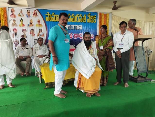 కూసుమంచి, జూలై 12, మహా: మండల పరిధిలోని కోక్యతండాకు చెందిన శివ గాయత్రి ఆశ్రమం పీఠాధిపతి హలావత్ బలరాం నాయక్ ను సామాజిక సమరసత వేదిక ఘనంగా సత్కరించింది. భద్రాచలంలోని రాఘవ నిలయంలో రెండు