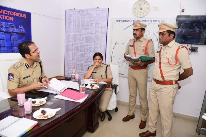 హన్మకొండ మహా; వరంగల్ పోలీస్ కమిషనర్ సన్ ప్రీత్ సింగ్ బుధవారం కాజీపేట ట్రాఫిక్ పోలీస్ స్టేషన్ ను సందర్శించారు. ఈ సందర్భంగా స్టేషన్లో నిర్వహిస్తున్న పలు రికార్డులను సిపి పరిశీలించడం తోపాటు డ్రంక్