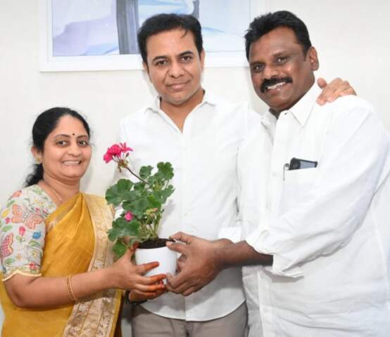 కెటిఆర్ ను కలిసిన కొత్తగూడెం మున్సిపల్ మాజీ చైర్మన్ కాపు సీతాలక్ష్మి దంపతులు ..!