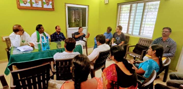 మధిర,జూలై16(మహ): మధిర వ్యవసాయ మార్కెట్ కార్యాలయములో మార్కెట్ కమిటీ చైర్మన్ బండారు నరసింహారావుతో కలిసి సంబంధిత అధికారులు,రాష్ట్ర, జిల్లా పరిశీలకులు ధాన్యం కొనుగోళ్ళ సమయంలో జరుగుతున్న ఇబ్బందుల విషయమై చర్చించినారు. ఖరీఫ్,రబీ సీజన్లలో ధాన్యం