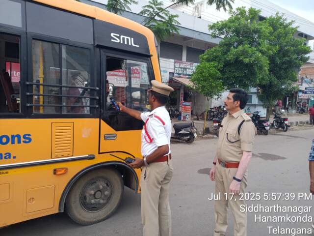 స్కూల్ బస్, ఆర్టీసీ డ్రైవర్లకు డ్రంక్ అండ్ తనిఖీలు చేసిన ట్రాఫిక్ పోలీస్ వరంగల్ ట్రాఫిక్ ఏసిపి సత్యనారాయణ..!