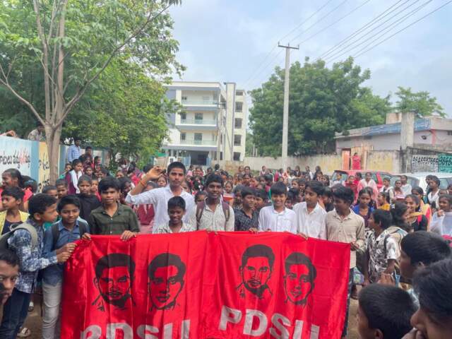 ఖమ్మం సిటీ, మహా. ప్రభుత్వ పాఠశాలల్లో మౌలిక సదుపాయాల కొరతను తప్పుపడుతూ విద్యార్థులు ఖమ్మం పట్టణంలోని పలు హై స్కూల్స్ వద్ద శుక్రవారం నిరసన వ్యక్తం చేశారు. ప్రగతిశీల ప్రజాస్వామ్య విద్యార్థుల ఐక్యత ఆధ్వర్యంలో