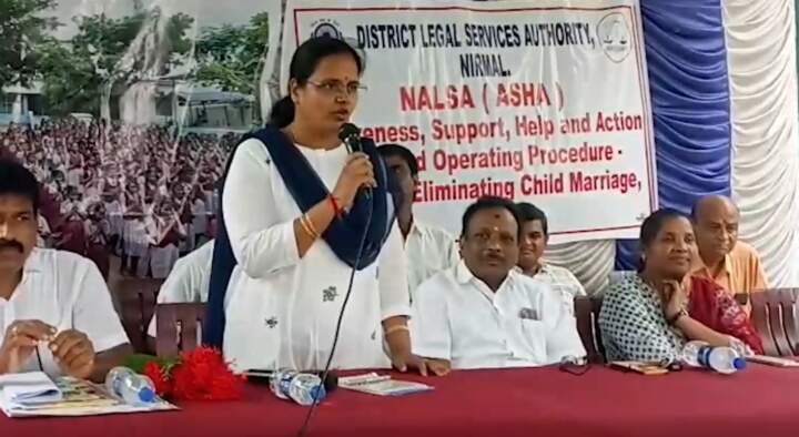 నిర్మల్ మహా : నిర్మల్ జిల్లా మామడ మండలంలోని పోన్కల్ ఉన్నత పాఠశాలలో మంగళవారం జిల్లా న్యాయమూర్తి రాధిక ఆధ్వర్యంలో బాల్య వివాహాలపై అవగాహన సదస్సు నిర్వహించారు. ఈసందర్భంగా గ్రామంలో విద్యార్ధులచే అవగాహనా ర్యాలీ