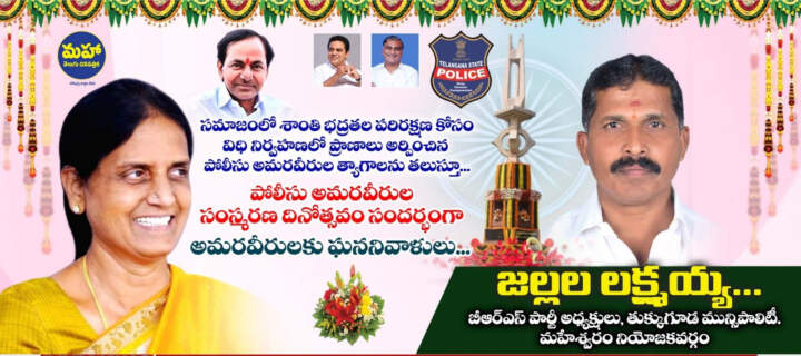 సమాజంలో శాంతి భద్రతల పరిరక్షణ కోసం విధి నిర్వహణలో ప్రాణాలు అర్పించిన పోలీసు అమరవీరుల త్యాగాలను తలుస్తూ… పోలీసు అమరవీరుల సంస్మరణ దినోత్సవం సందర్భంగా అమరవీరులకు ఘననివాళులు. జల్లల లక్ష్మయ్య… బీఆర్ఎస్ పార్టీ అధ్యక్షులు,