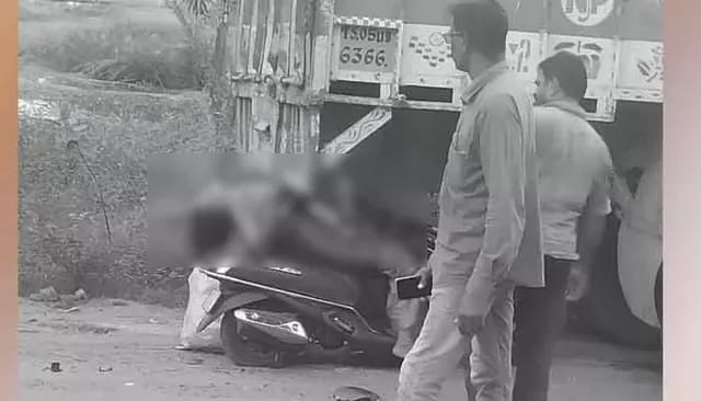 లారీ కిందకు దూసుకెళ్లిన స్కూటీ.. మహిళ స్పాట్ డెడ్