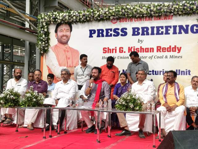 కేంద్రమంత్రి గ్రేటర్ వరంగల్ పర్యటన విజయవంతం శ్రీ భద్రకాళి, వేయి స్తంభాల ఆలయాల్లో ప్రత్యేక పూజలు రైల్వే తయారీ యూనిట్ ను సందర్శించిన కేంద్ర మంత్రి మీడియా సమావేశంలో కేంద్ర మంత్రి జి కిషన్