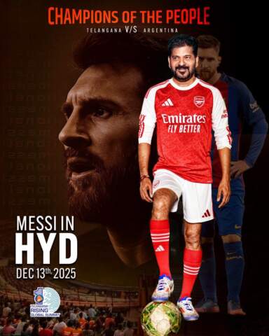 ఫుట్ బాల్ దిగ్గజం మెస్సీ x రేవంత్ సర్కారీ స్టూడెంట్స్ టీమ్ ప్రపంచం దృష్టిని ఆకర్షిస్తున్న ఎగ్జిబిషన్ మ్యాచ్ భారత ఫుట్ బాల్ అభిమానులంతా హైదరాబాద్ కు డిసెంబర్ 13న ఆసక్తికర మ్యాచ్ హైదరాబాద్