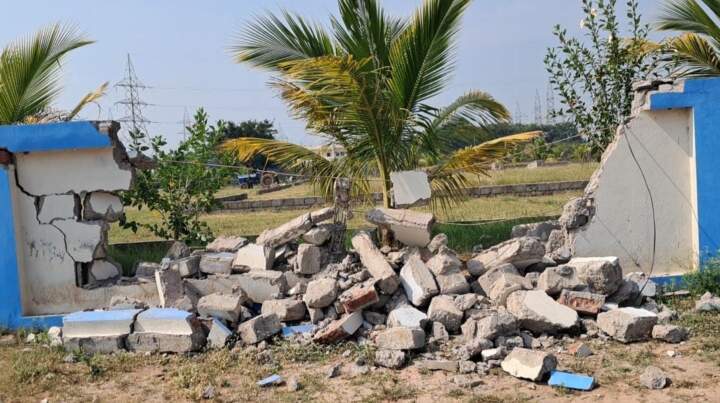 100 పైగా ఘటన స్థలానికి దుండగులు పోలీసుల అదుపులో 3 జెసిబి లు, నిందితులు మందమర్రి, మహా : మందమర్రి పోలీస్ స్టేషన్ పరిధిలోని లక్ష్మి భవాని ఫంక్షన్ హాల్ ప్రహరీ గోడను కూల్చివేతకు