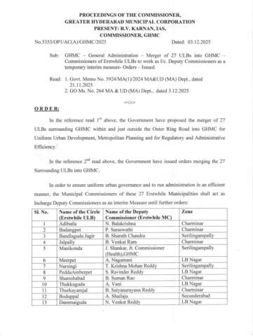 గ్రేటర్ హైదరాబాద్ సరిహద్దుల విస్తరణ. * 27 పట్టణ స్థానిక సంస్థలను జీహెచ్ఎంసీలో విలీనం చేస్తూ మధ్యంతర ఉత్తర్వులు జారీ. హైదరాబాద్. మహా. తెలంగాణ ప్రభుత్వం ప్రతిపాదించిన చారిత్రక నిర్ణయం మేరకు, గ్రేటర్ హైదరాబాద్